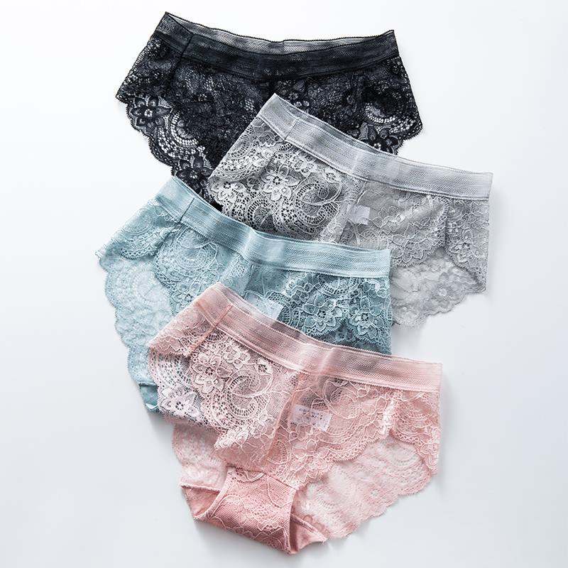 4Pcs/Sexy Lace Panties Seamless Women's Underwear Low Rise Briefs Nylon Silk Ladies Cotton Sexy Transparent Lingerie